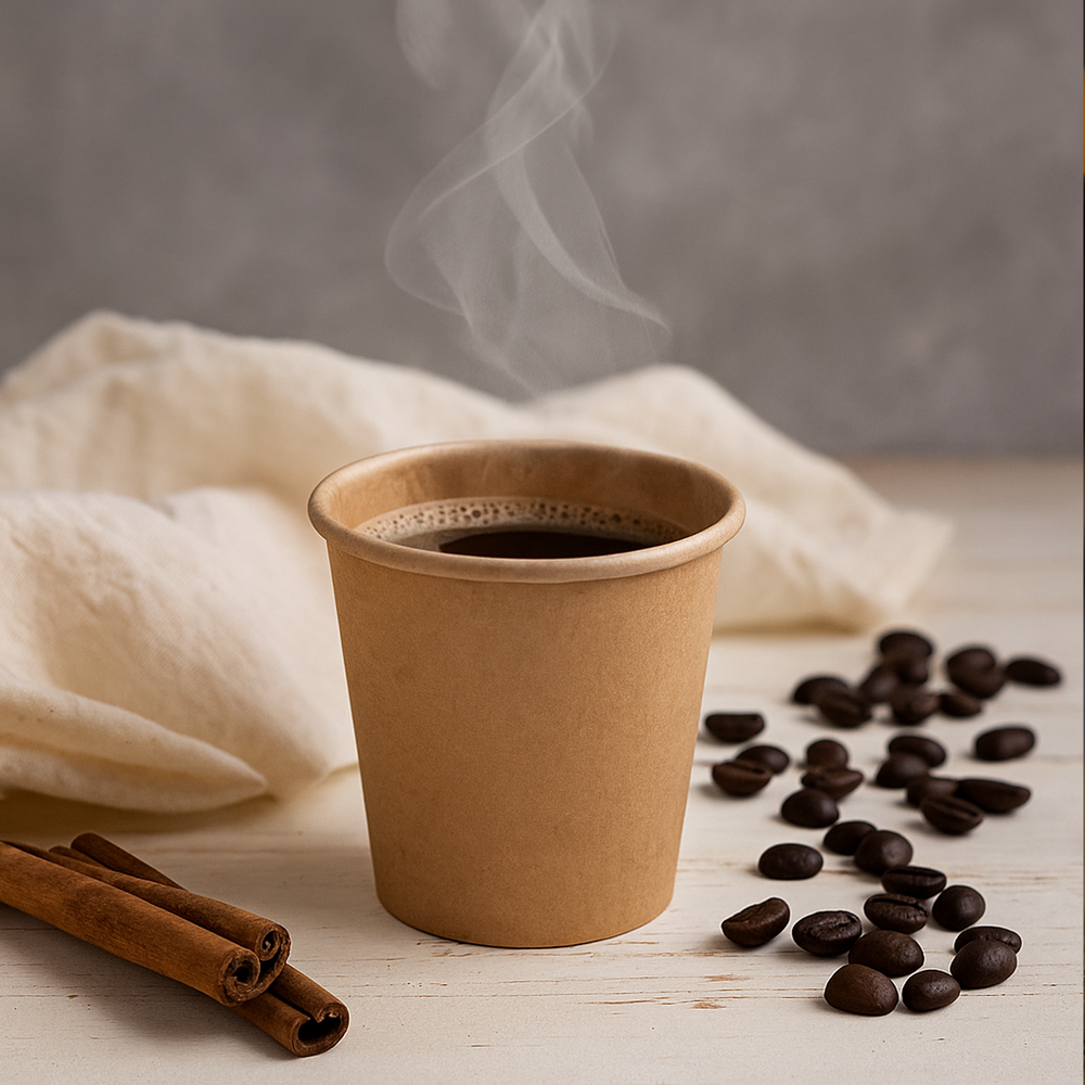 Ontdek onze milieuvriendelijke 120cc Kraft espressobekers, die niet alleen een esthetisch aantrekkelijke kartonachtige kleur hebben, maar ook een bewuste keuze vertegenwoordigen voor duurzaamheid. Deze bekers worden vervaardigd uit recyclebaar karton, waardoor ze een aanzienlijk duurzamer alternatief vormen in vergelijking met traditionele kartonnen bekers.