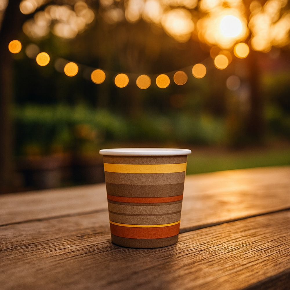 Ervaar ultiem koffiegenot met onze Luxury koffiebekers 120cc, ontworpen voor espresso en andere warme dranken. Deze kartonnen espressobekers combineren elegantie en functionaliteit met een opvallend design in warme geel-, oranje- en bruintinten.