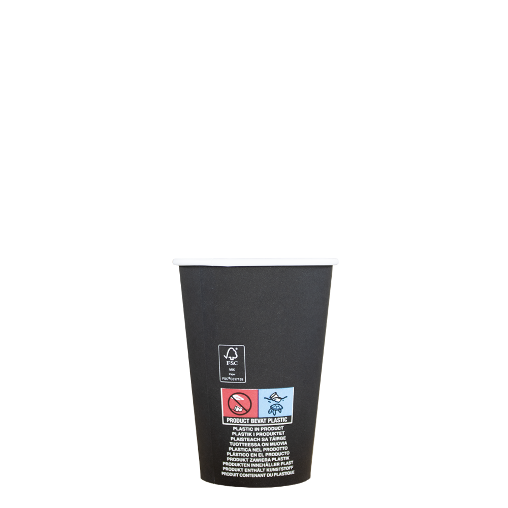 Naast dit formaat van 180cc hebben we ook de 120cc, 230cc en 360cc in ons assortiment. Ontdek onze veelzijdige zwarte FSC® bekers, beschikbaar in een scala aan formaten om aan al je behoeften te voldoen. Of je nu een snelle espresso, een bruisende frisdrank of veel warme dranken serveert, wij hebben de perfecte beker voor jou.