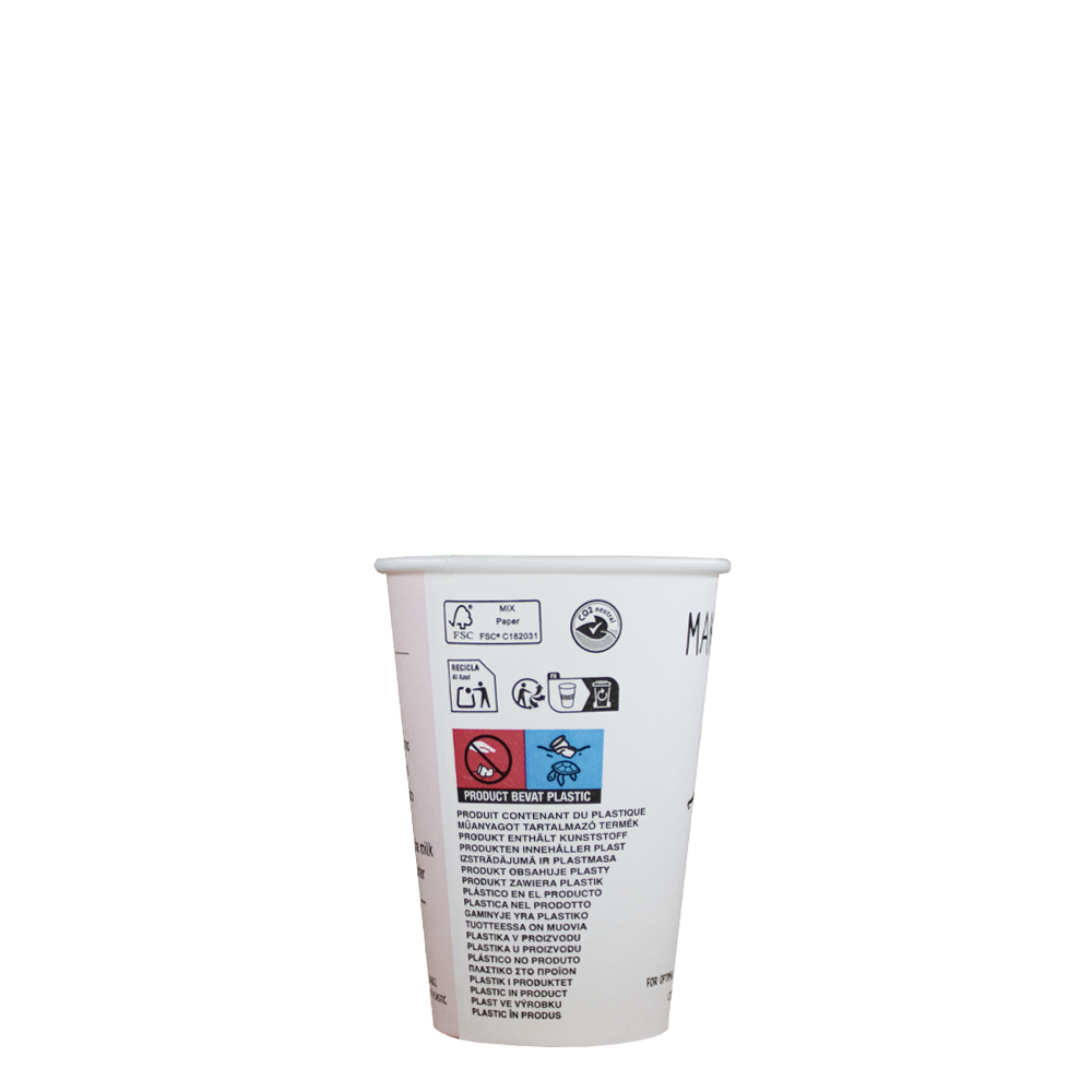 Indien de koffiebekers worden ingezameld voor recycling, hebben we extra regels toegevoegd voor stimulering hiervan, de kennis hiervan ontbreekt namelijk vaak bij de koffiedrinker. Voor optimale duurzaamheid, zijn deze koffiebekers geproduceerd van gecertificeerd FSC®-gecertificeerd karton.