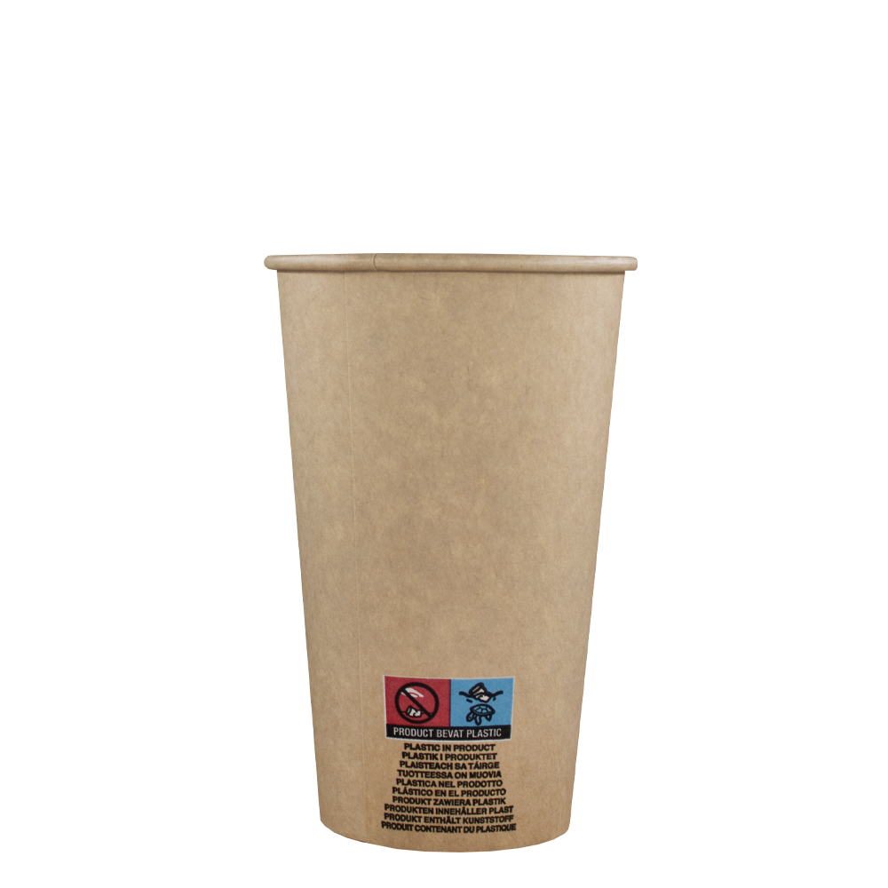Lattebeker formaat 450cc (16oz) in een Kraft kleur, kartonnen uitstraling. De bekers zijn gemaakt van recyclebaar karton en hebben daardoor een duurzamer karakter dan reguliere kartonnen bekers. Dit formaat is het meest geschikt voor coffee-2-go, latte of voor een kop thee.